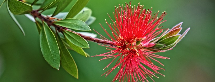 Le callistemon est un genre qui regroupe près de 30 variétés d’arbres et d’arbustes. Le point commun de tous étant une floraison très originale et facile à reconnaître. Son nom vient surement de la forme très caractéristique de ses fleurs qui ressemblent de près à un goupillon rince-bouteille, d’où son nom vernaculaire.
