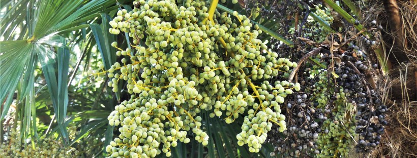Tout comme les fleurs, ces graines apparaissent sous forme de grappe de raisin tout en haut du palmier, et se trouvent à la base des feuilles. Il est à noter que la période de floraison pour un palmier chanvre est entre le mois de Mai et le mois de Juin, autrement dit, dès le début de l’été. Dans certaines régions de la Chine, les fleurs du palmier chanvre sont consommées en tant que légume.
