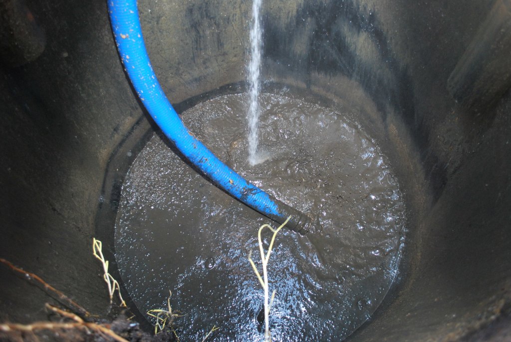 - La première étape du pompage consiste à vidanger l’eau de la fosse se trouvant dans le premier compartiment du camion.