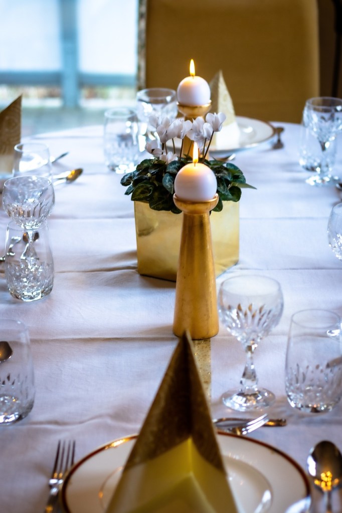 Assurez-vous que le centre de table ne soit pas trop haut pour ne pas gêner la conversation entre les personnes. L’important est de trouver un juste équilibre entre une déco de table esthétiquement plaisante et fonctionnelle.