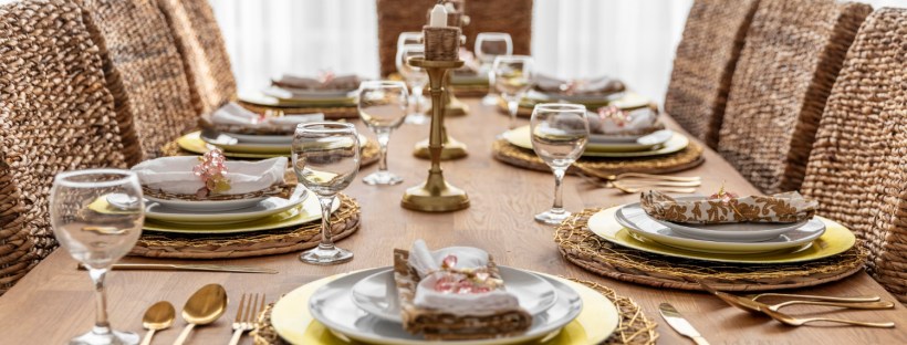La règle d’or à respecter est que les accessoires soient en harmonie avec le reste de votre déco de table. Ils doivent être esthétiquement agréables et fonctionnels, c’est-à-dire que les invités doivent pouvoir se servir et manger confortablement sans être gênés par les accessoires de table.