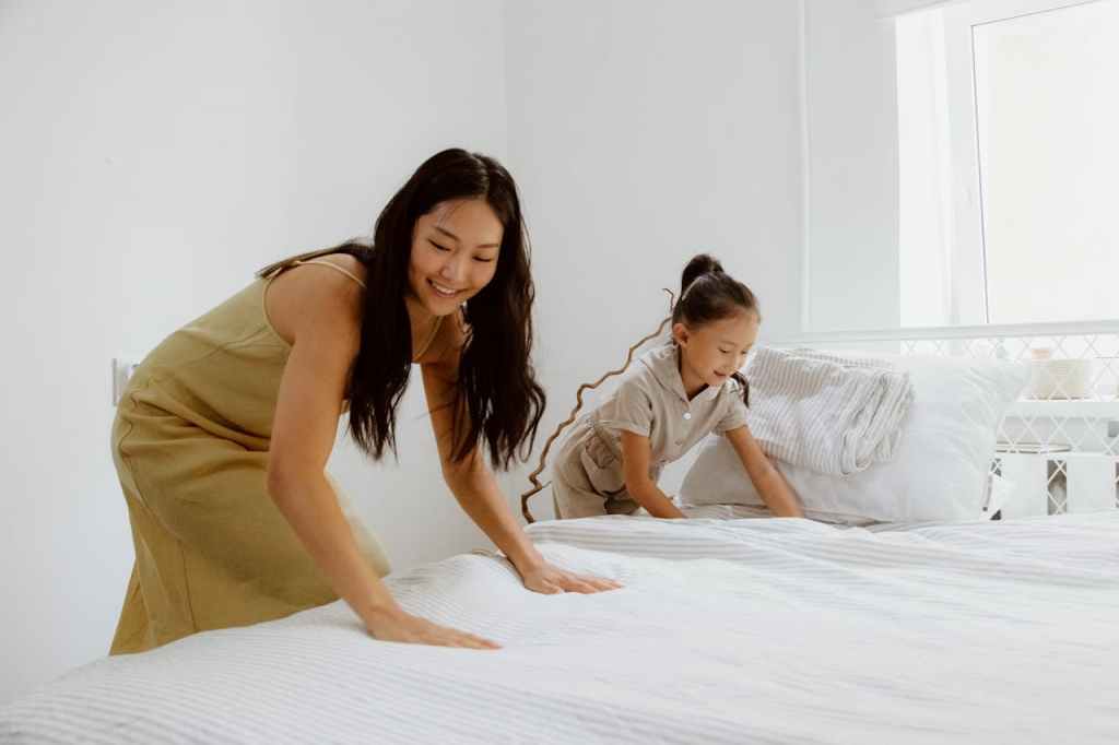 Cela inclut des tâches telles que le nettoyage des surfaces de cuisine et de la plaque de cuisson si elle a été utilisée, le passage de l’aspirateur si possible dans toutes les pièces de la maison, le nettoyage des salles de bains et la vaisselle. Pensez également à vider les ordures et à organiser vos vêtements sales dans les paniers à linge.