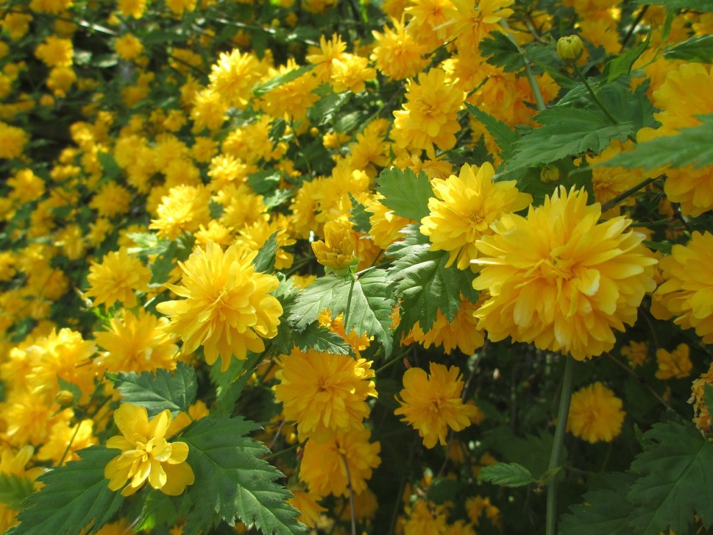 - La Kerria japonica « Simplex »: Cette variété se distingue avec ses fleurs simples, d’un beau jaune doré. Cependant cela ne la rend pas moins décorative, au contraire puisqu’elle s’utilise en haie et massif de 1 à 3 mètres. Elle se cultive également en pot, ce qui permet de décorer tout espace intérieur.